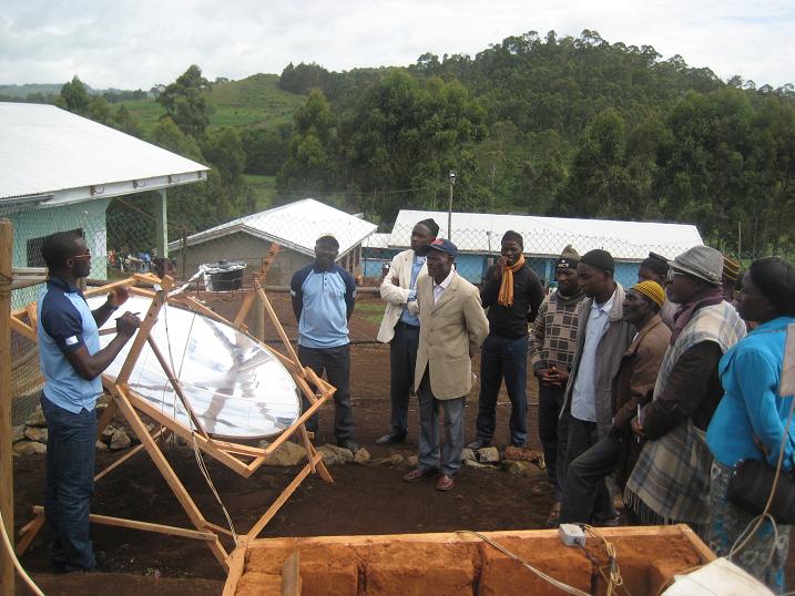 Some smaller ovens have also been produced at DevICe, so far only for demonstration purpose. The objective is to introduce solar ovens for both pasteurization and solar cooking. You can actually cook food using only the solar irradiation.